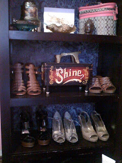 Sorry for lack of pictures still not sure what is going on w/ camera!!!!!! Yesterday I started and finished a small project in my dressing room.I put a bookshelf in the room to display some of my items (some shoes,and other stuff) I wanted to glam it up so I